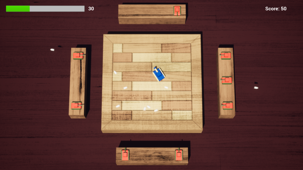 A fast-paced game where players dodge the incoming bullets from enemy tanks and fire back to achieve the highest score possible before taking too much damage!